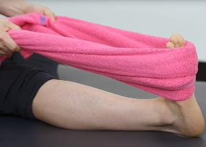 ② 다른 사람의 도움을 받거나 수건을 이용해 아킬레스건을 지그시 늘려줄 수 있습니다.(15초 동안)