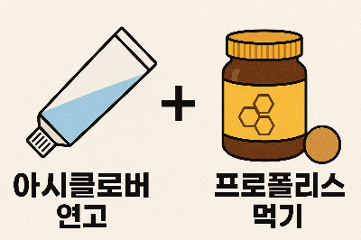 이때 먹는 약은 처방전 없이도 구매 가능한 프로폴리스입니다. 초기 진압 성공률을 높이는 핵심 포인트입니다.